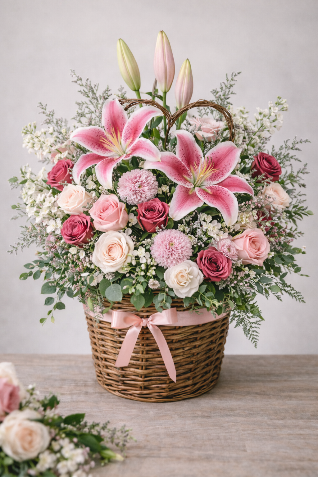 Hearts & Petals 💞 – Valentine’s Day Rose & Premium Lily Arrangement